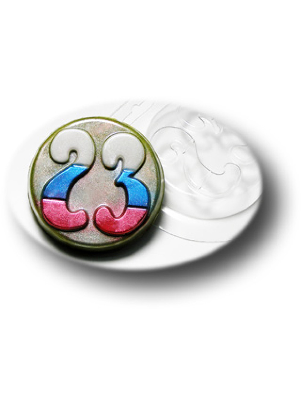 23 февраля (цвета флага) - формочка для мыла ручной работы с цифрами 23 на фоне круга.