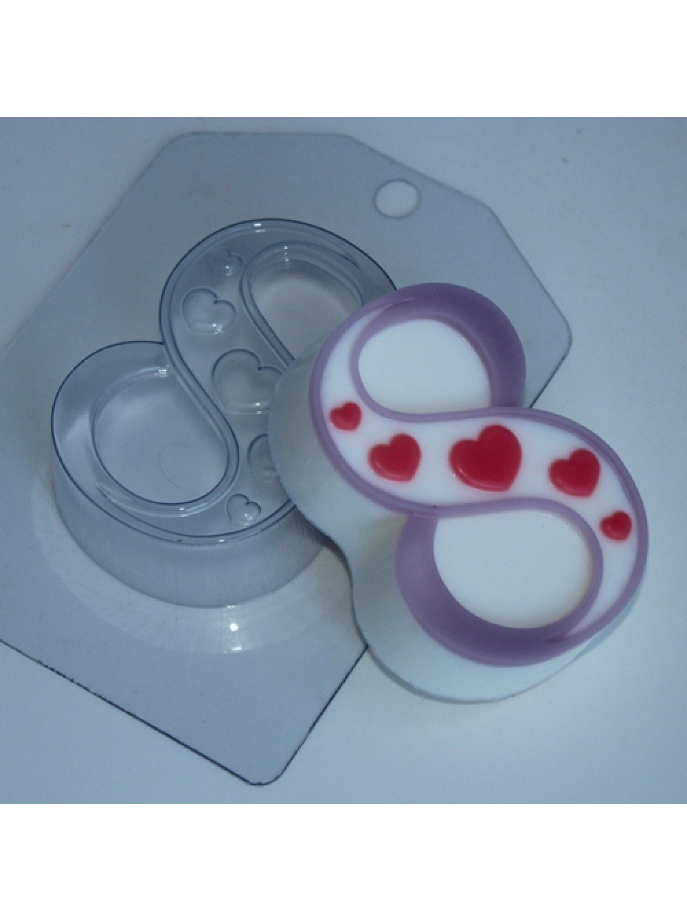 8 марта/ Сердечки по диагонали - форма для мыла пластиковая, позволяющая вам сделать мыло в виде восьмерки к празднику 8 марта. Восьмерка украшена сердечками разного размера. Такое мыло будет отличным подарком к празднику.