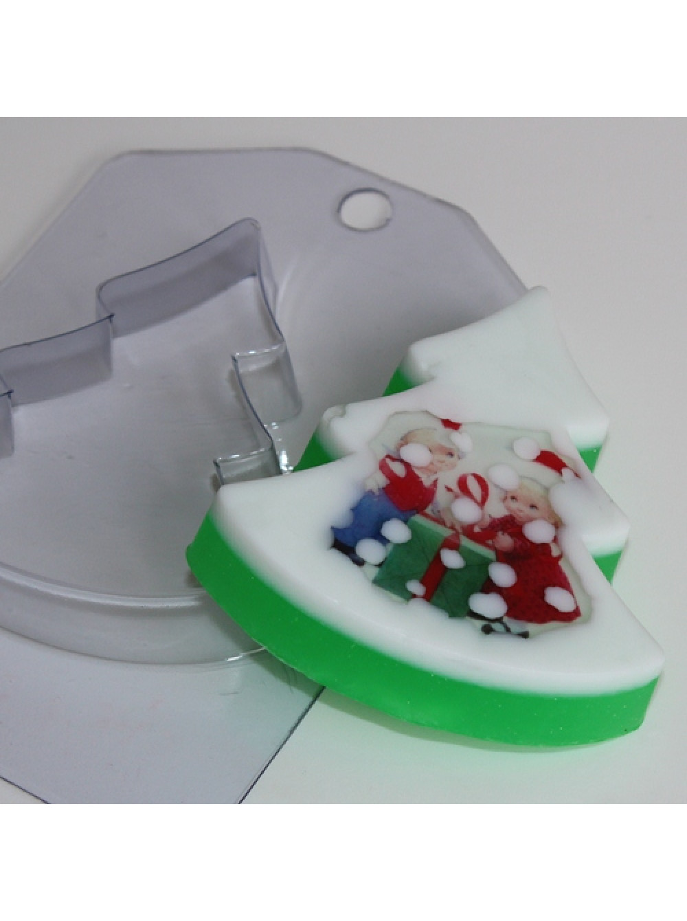 Форма елки подойдет для водорастворимой бумаги. Можно сделать мыло с картинкой, а можно сделать мыло-елочку из основы с глиттером или другими украшениями.