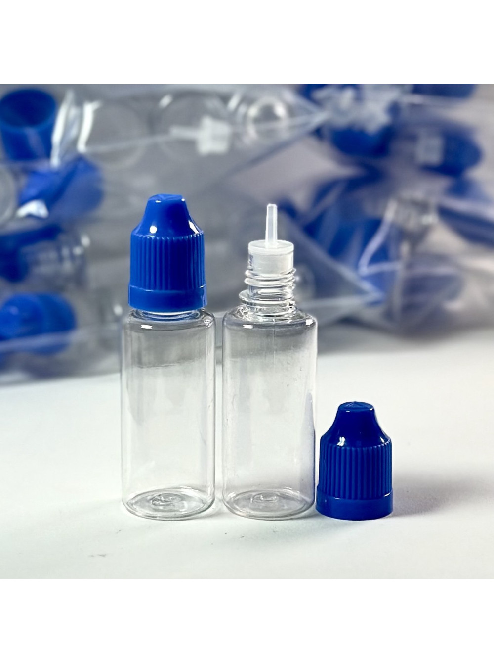 Флакон ПЭТ 20 мл, в комплекте пробка-капельница с тонким носиком и крышка белого цвета. Набор из 10 шт.