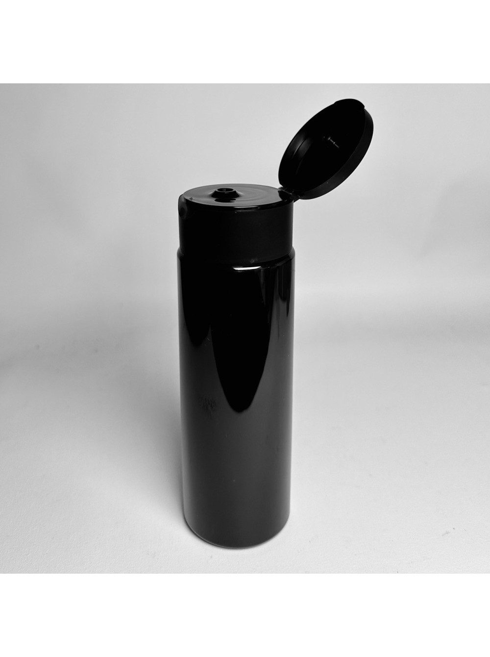 ПЭТ флакон черного цвета с черной матовой крышкой флип-топ. Прекрасно подойдет для шампуней и гелей для душа. Объем - 200 мл.