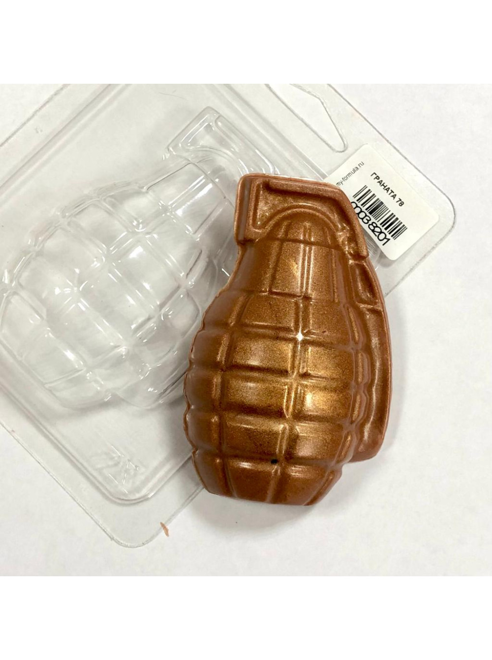 Пластиковая формочка для мыла в виде гранаты.  Отличный подарок на 23 февраля.
