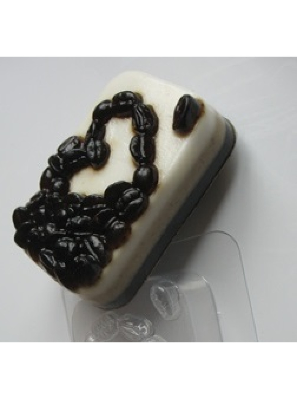 Формочка для любителей кофе. На форме есть сердечко из зерен кофе. Можно сделать эффектное двухцветное мыло.