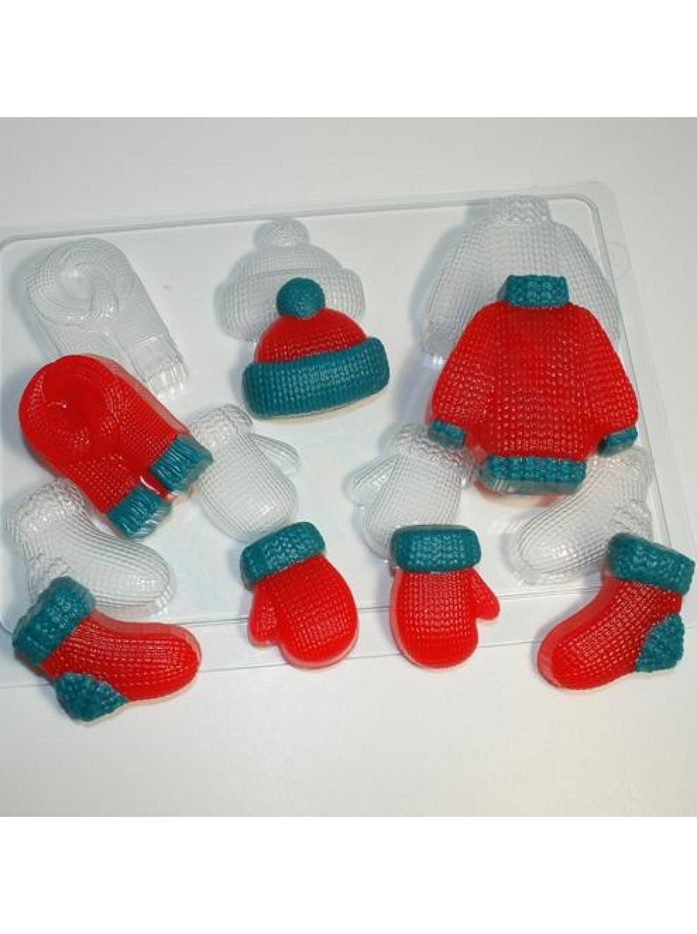 Вес готового мыла: Шапка - 15 Шарф - 25 Свитер - 40 Варежка(л/п) - 10 Носок(л/п) - 15